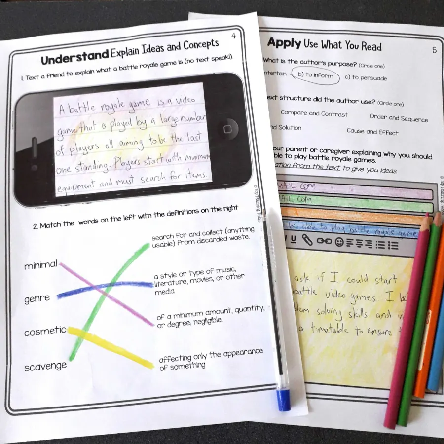 Improve reading comprehension in your classroom with our differentiated Video Games Reading Comprehension bundle This pack includes four non-fiction passages with six pages of engaging text-dependent questions and higher-order-thinking tasks. These activities are great for your guided reading program, as independent work, or as homework tasks – suitable for Year 5-8 students.