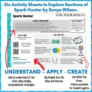 This resource is a comprehension, discussion and activity guide to accompany the novel Spark Hunter.   Spark Hunter follows Nissa, a young Kiwi girl driven by a singular quest: to discover the source of the mysterious lights haunting the Fiordland bush. Weaving between past and present, this time-twisting adventure explores deep themes of friendship, environmental…