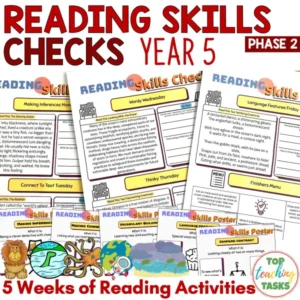Supercharge your reading programme with this engaging five-pack Reading Skills Check Mega Bundle! Designed for Year 5 learners, this resource uses high-interest themes – Big Cats, Cryptids, Ocean Creatures, Weather, and Space – to build comprehension, vocabulary, inference, and analytical skills in a structured, easy-to-implement format. Each pack offers a week of scaffolded activities…