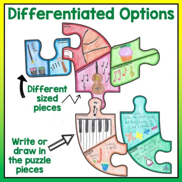 This puzzle features a range of puzzle piece sizes. The options for completing the puzzle have been left open-ended so that your students can all complete a puzzle in a way that suits where they are at. Some may choose to write a response, while others may draw theirs – or a bit of both. Everyone in your class can have success with this collaborative activity.
