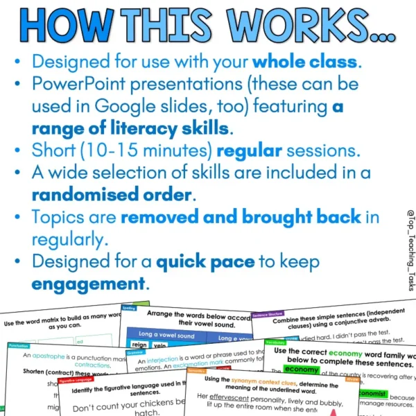 - As PowerPoint presentations (these can be used in Google slides, too) featuring a range of literacy skills.