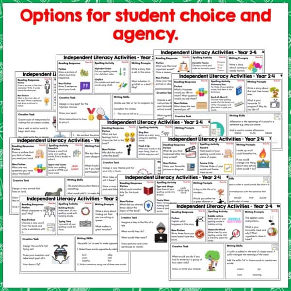Choices are provided to give your students agency, and a range of activities are provided so students can practice a variety of important literacy skills.