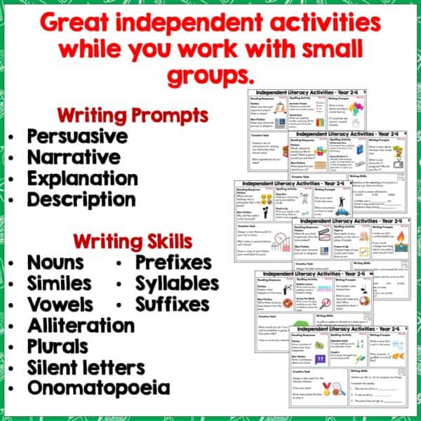 The purpose of this Independent Literacy Activities Year 2-4 resource is to provide independent literacy activities for your Year 2-4 students to complete while you are working with other groups.