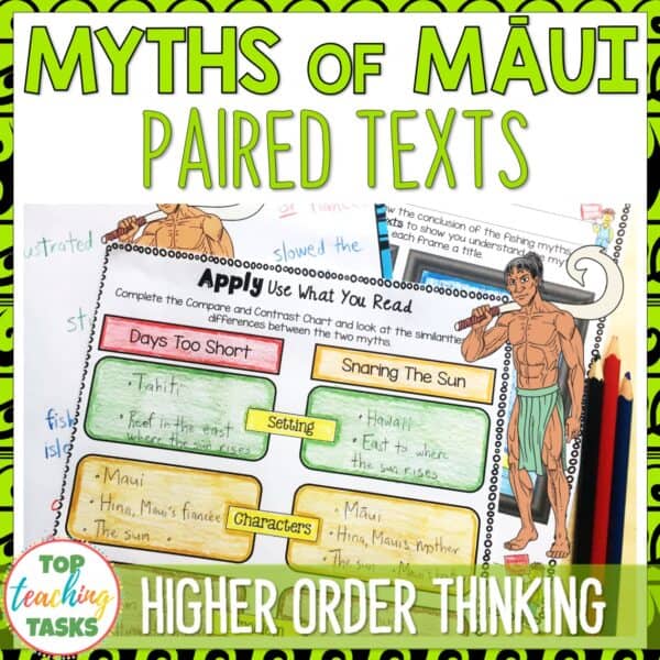 Learn about the cheeky character of Maui the demigod with our Maui Myths Paired Texts from the Pacific and Polynesian islands of Hawaii, Tahiti, Tonga, and New Zealand. These fiction-to-fiction paired texts target reading comprehension using two different passages about Māui and his exciting adventures.