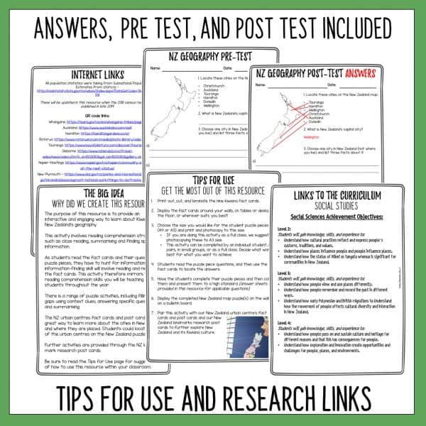 - New Zealand Urban Areas Fact Cards and Follow Up Activities