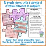 Display the eight fact cards around the room, and hand out the puzzle pieces. Students use the facts to complete their interactive puzzles. Display the amazing completed puzzles and wow your school! This activity works for individuals, pairs, or teams.