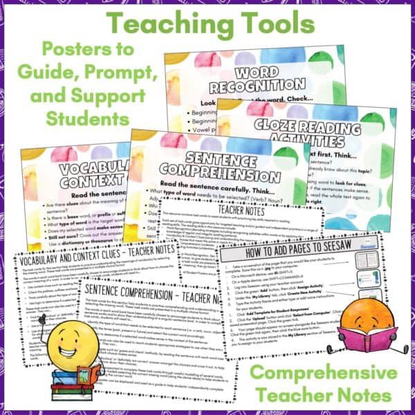 Reading Skills Task Cards and Teaching Tools – Word Recognition and Vocabulary