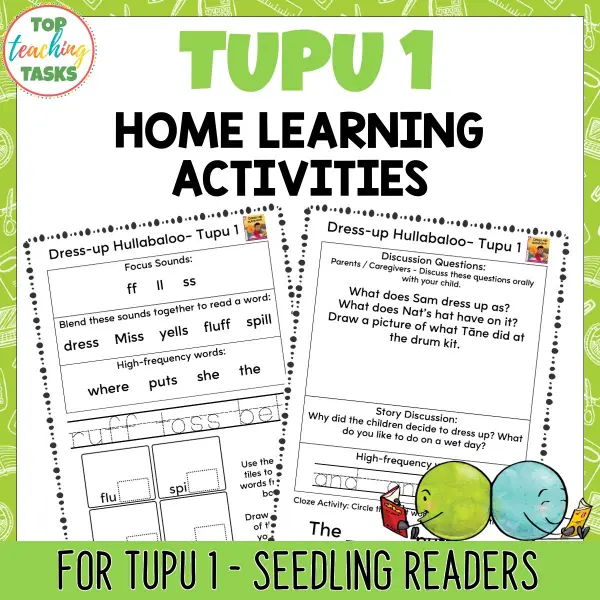 This resource provides simple and practice activities to send home to emergent readers who follow the Ready to Read Phonics Plus scope and sequence. It covers Tupu—Seedling 1 readers.