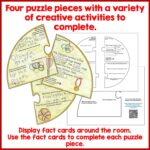 Display the six fact cards around the room, and hand out the puzzle pieces. Students use the facts to complete their interactive puzzles. Display the amazing completed puzzles and wow your school! Add ribbon or string to complete the medals! This activity works for individuals, pairs, or teams.