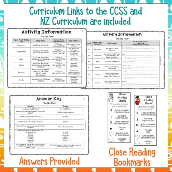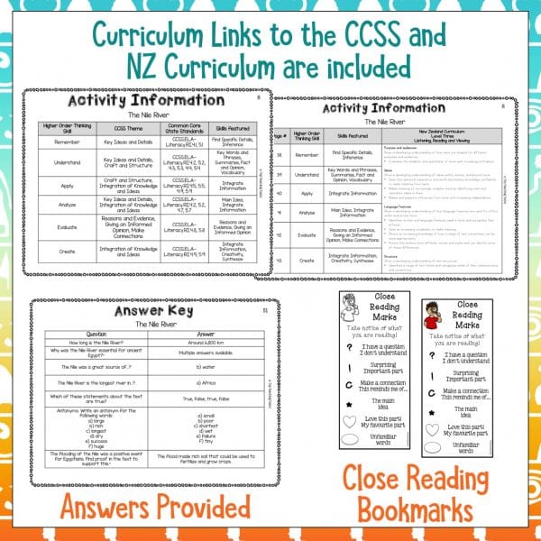 Take a trip back in time while improving reading comprehension with our differentiated River Nile Reading Comprehension activities. This activity pack includes one Year Five and Six (Grade Five and Six) informational non-fiction passage with six pages of unique and engaging text-dependent questions and higher-order thinking tasks. Gain context with our bonus Ancient Egypt powerpoint and Internet website links. Now includes a full digital version.